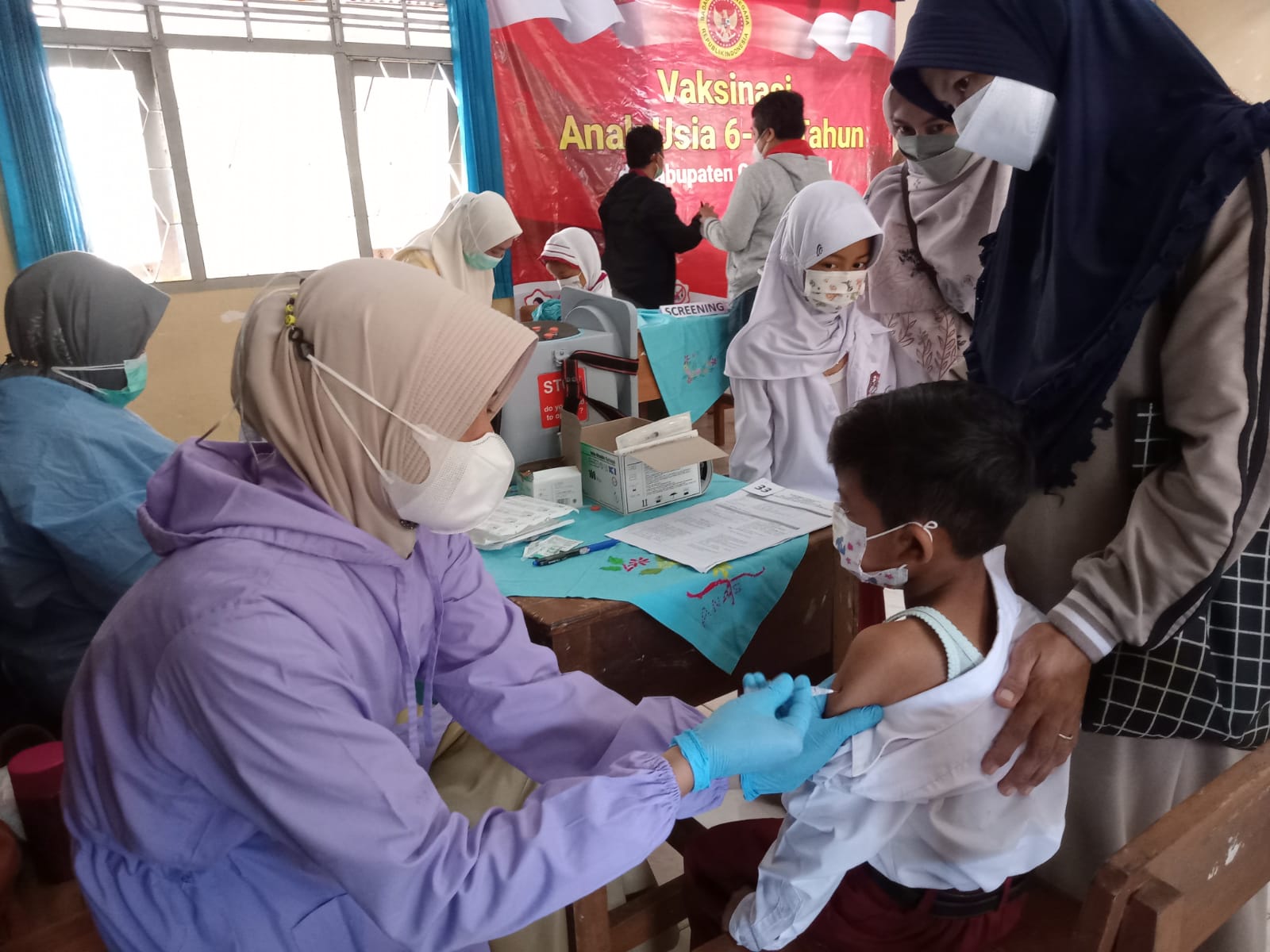 Deskripsi : KEGIATAN VAKSINASI DOSIS 1 DI SD NEGERI SELANG